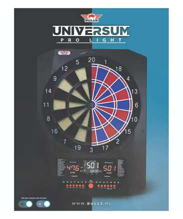 Bull's Universum Pro L Electronic Softtip Dartboard to wysokiej klasy elektroniczna tarcza przeznaczona zarówno do użytku domowego, jak i turniejowego. Oferuje profesjonalne wymiary, nowoczesny wygląd oraz szeroki wybór trybów gry. Dzięki dwóm wyświetlaczom LED obsługuje do 8 graczy i zapewnia doskonałą czytelność wyników. Tarcza dostępna jest w dwóch wersjach kolorystycznych – Black/White oraz Red/Blue – i zapewnia realistyczne wrażenia dzięki wymiarom odpowiadającym tradycyjnym tarczom steel-tip.